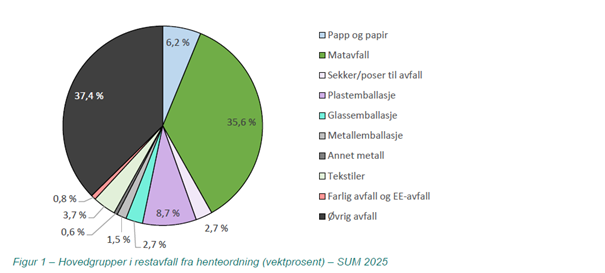Samtidig ser vi ei positiv utvikling samanlikna med tidlegare år. Mengda matavfall som blir sortert ut har auka mykje frå 2024 til 2025, som tyder på at fleire har teke i bruk matavfallsbehaldaren. Erfaringar frå andre kommunar viser at det ofte tek tid før nye sorteringsordningar blir godt innarbeidde, og utviklinga i SUM sitt område peikar i rett retning.